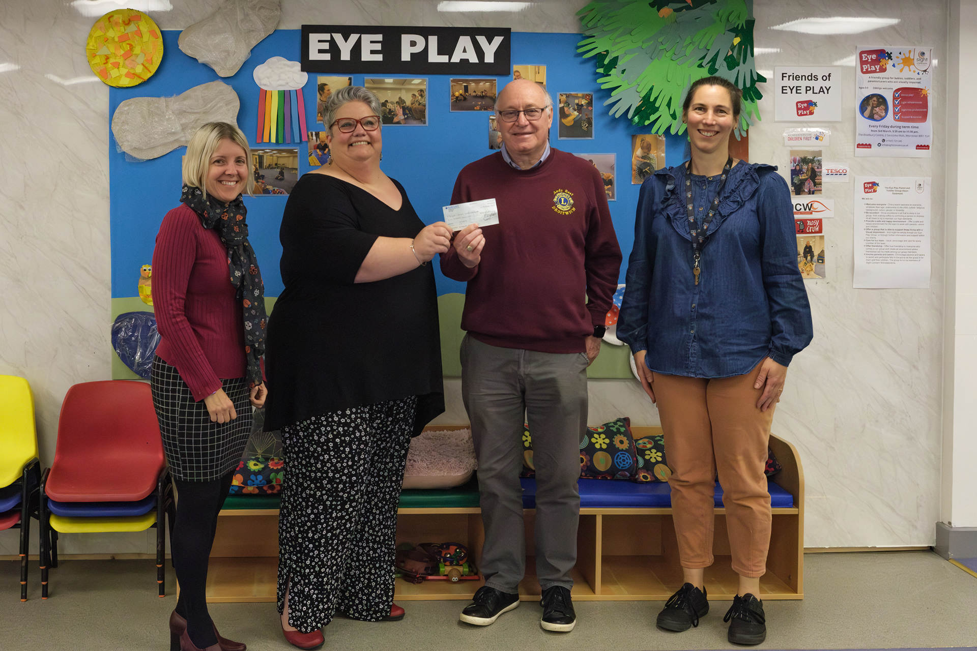 Lion Andy Best visit Speakeasy to present a cheque for £200 for first aid training.