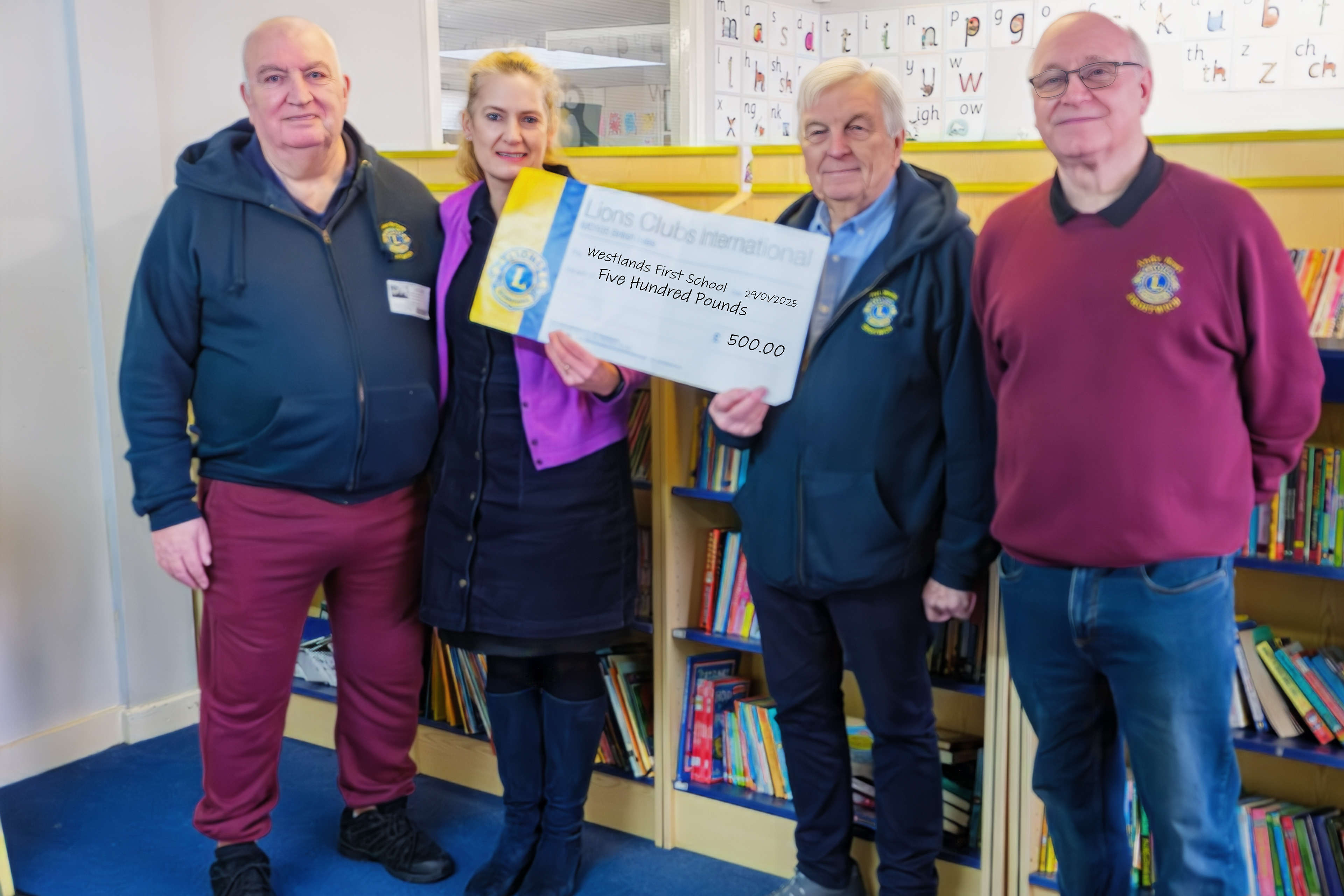 Lions Andy Best, Phil Wallis and I had the pleasure today of presenting a cheque for £400 to Westlands School. The money being the receipts from a recent monthly book sale.It is a pleasing irony that it is to be spent by the school on much needed books.